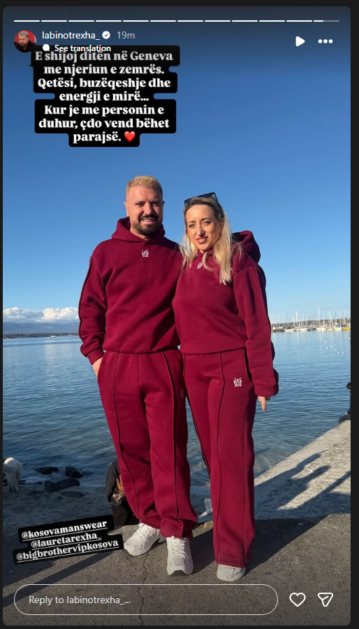 “E shijoj ditën në Geneva me njeriun e zemrës. Qetësi, buzëqeshje dhe energji e mirë… Kur je me personin e duhur, çdo vend bëhet parajsë,” ka shkruar Rexha krahas fotos, duke shoqëruar postimin me disa zemra.